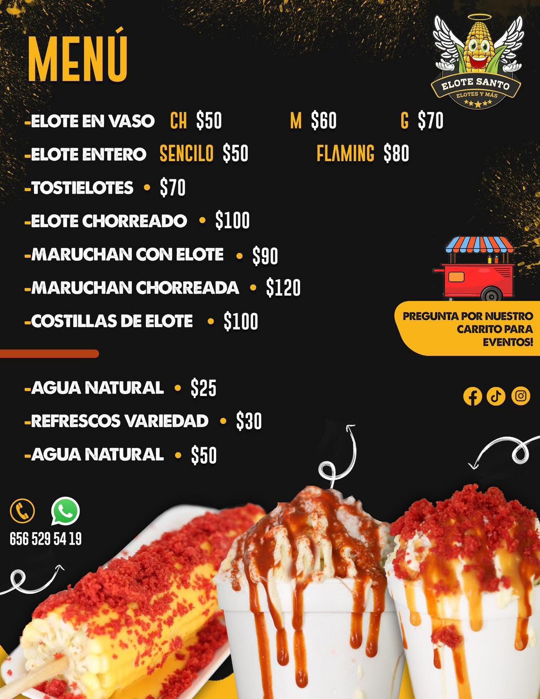 En Elote Santo nos enorgullecemos de ofrecer una amplia variedad de deliciosos platillos que giran en torno a nuestro ingrediente principal: el elote. Como restaurante especializado en la venta de elotes, nuestra lista de precios refleja nuestra pasión por este alimento versátil y sabroso.